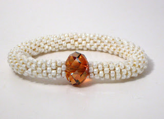 Happy September! I am so happy to Autumn approaching for it is my favorite time of year. It is also what inspired these 2 Swarovski Beaded Bracelet bracelets. The bracelets are crochet ropes using high quality seed beads and the dazzling center is an 18-mm Swarovski large hole, bead that really makes these bracelets sparkle and come to life. This bead used in both bracelets is the Swarovski 18 mm Faceted Roundelle Large Hole. It looks really spectacular against the creamy beads. You can get the completed bracelets at Divella Delights or you can go to Art Beads make your own Swarovski Beaded Bracelet.